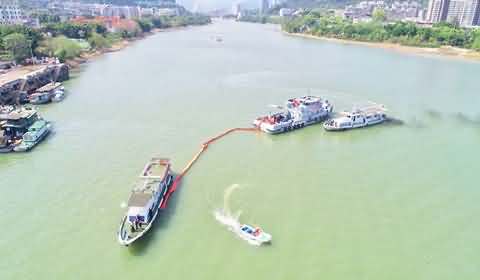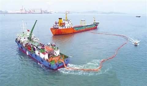Large areas of oil pollution approaching water intake,Maritime department urgently disposed