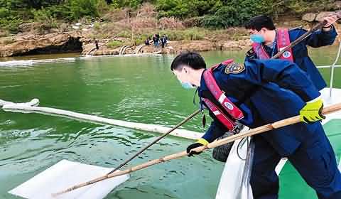 Large areas of oil pollution approaching water intake,Maritime department urgently disposed